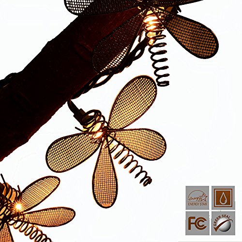 LIDORE set of 10 Vintage style New Metal Dragonfly String Lights.Ideal for Gradon, outdoor and indoor decor.