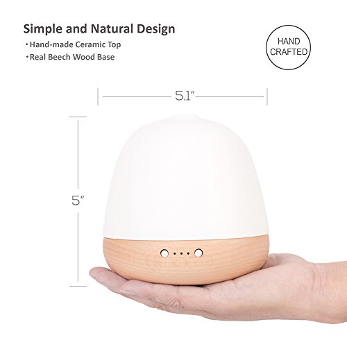SIMPLE & NATURAL DESIGN: The Mia essential oil diffuser comes with a HAND-CRAFTED CERAMIC TOP and a base made of a solid piece of hand selected BEECH WOOD (FSC certified). It is a FINE PIECE OF ART, crafted to blend seamlessly into any décor, which makes it a great choice for a unique gift.