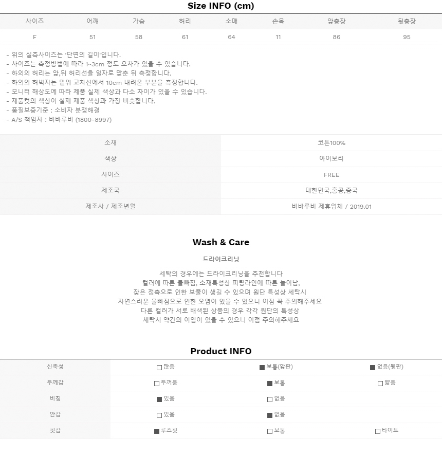 소매와 백라인은 신축성이 적은 소재감으로