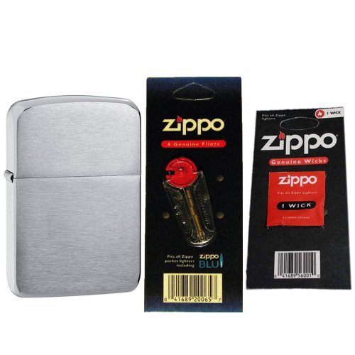 -. Title : ZIPPO 1941 Replica Brushed Chrome Windproof Lighter with Two Flint Card and One Wick Card