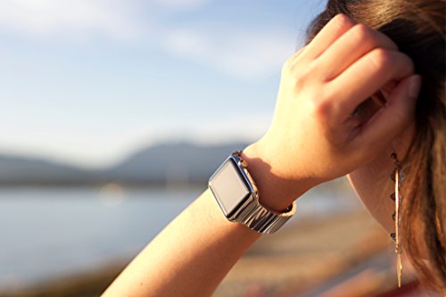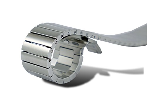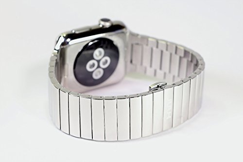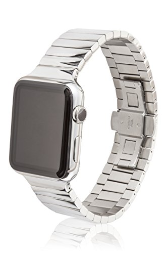 38mm JUUK Revo Premium Apple Watch band, made with Swiss quality using only the highest grade solid 316L stainless steel with a high-polished finish and solid steel butterfly deployant buckle