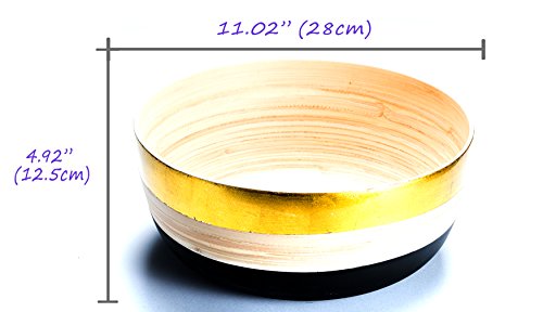 Bamboo Salad Bowl Large 11" X 4.92" 100% Bamboo Wood Bowl Gold Black And Wood Eco Frienldy Colors