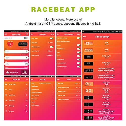 REMINDER + GOALS SETTING: Added Break time reminder; Sleep reminder; Meal time reminder; Medicine reminder; Wake up alarm. Users can customize any reminder function. In addition, there are target settings, you can set up all projects according to your needs, include:Step Goal; Active Minutes Goal; Distance Goal; Calories Goal; Sleep Goal in hour.