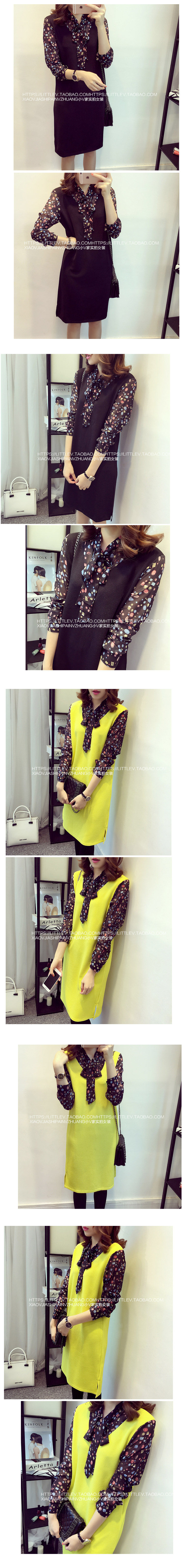 韩版雪纺碎花拼接连衣裙 |