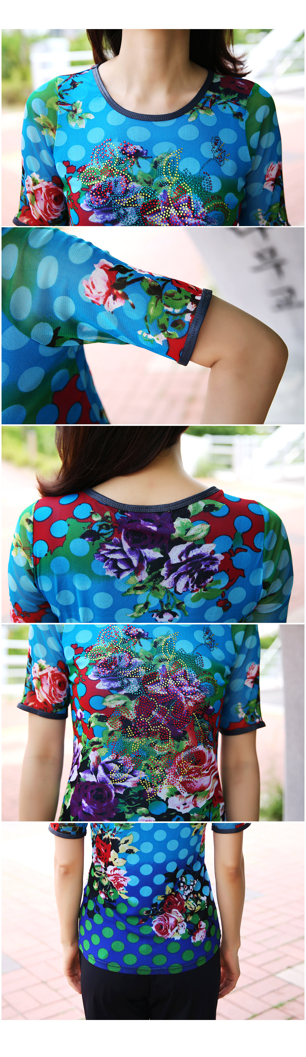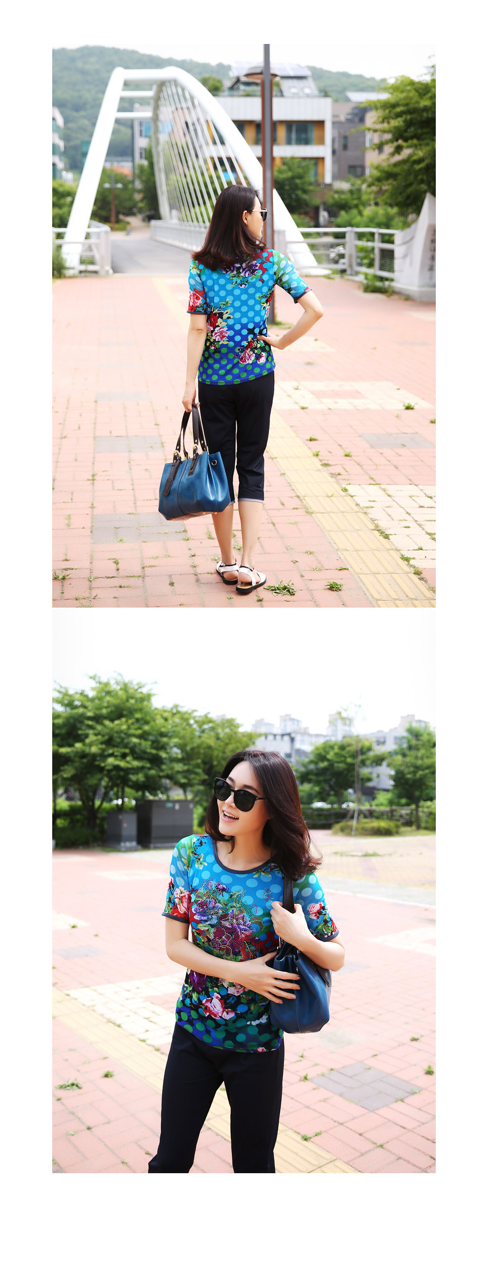 도트와 플라워 프린팅이 만나 화려한 포인트 탄생