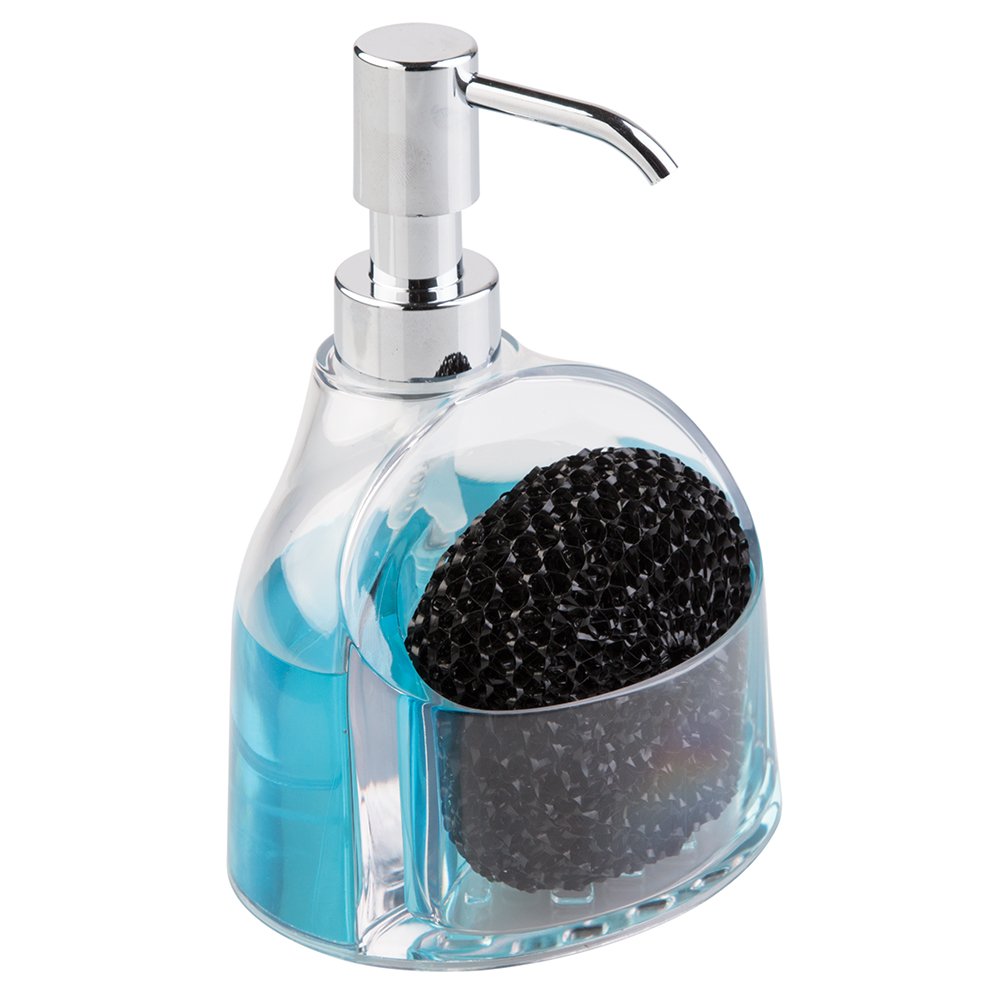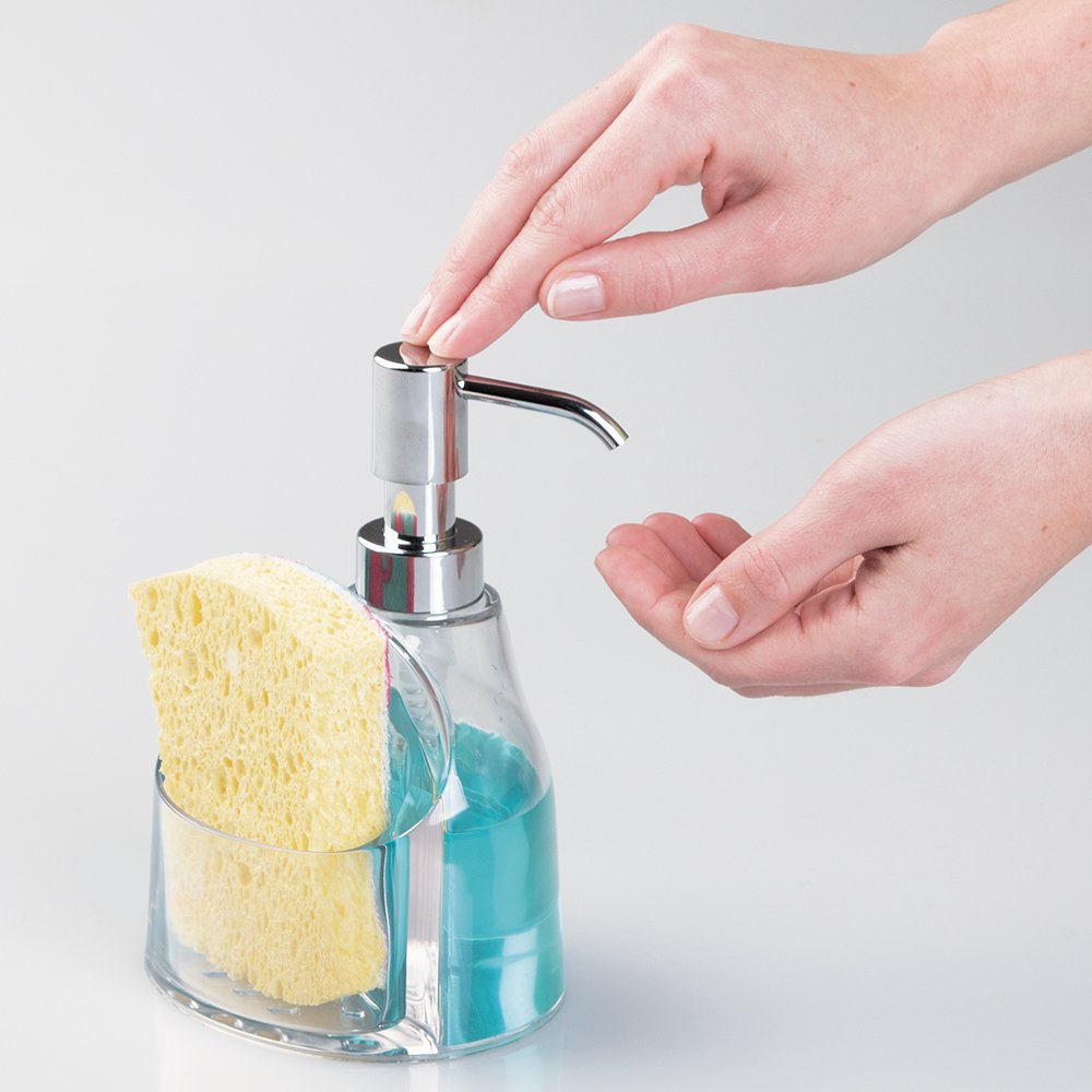 InterDesign Roo soap bottle is equipped with a sponge caddy that can hold scourers etc.