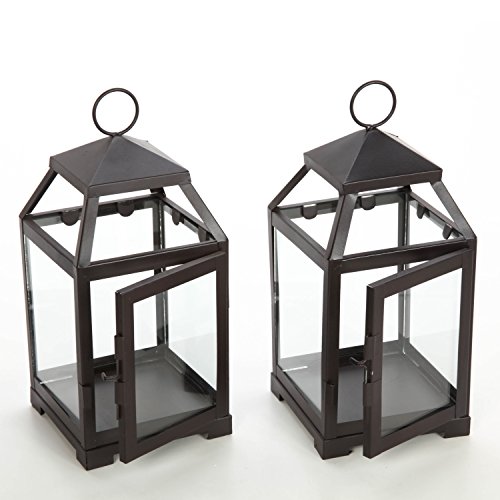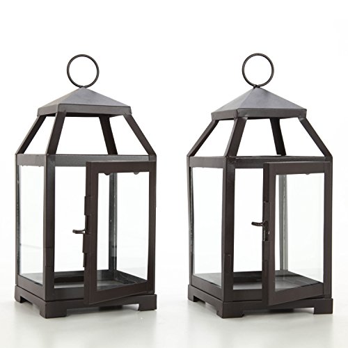 Product Description Hosley's Set of 2- 12" High Iron Lantern. Measures 5.5" x 5.5" x 12". For use with pillar candles. Ideal for festivities, parties, weddings, aromatherapy and spa settings. 0