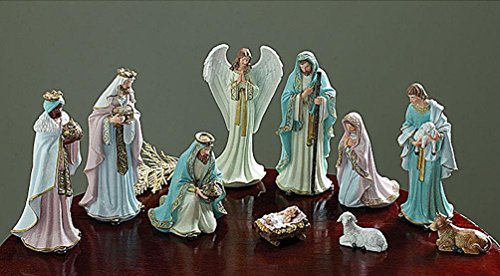 Burton + Burton Victorian Christmas Nativity Set, 10 Pieces, Pastel Colors, 2"-8.75" Tall