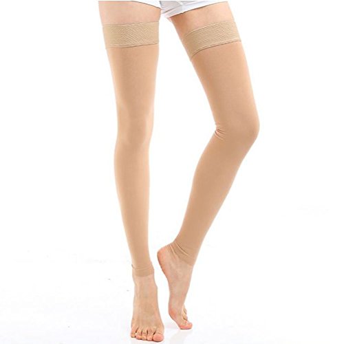 Goege Footless Compression Stockings-Thigh High Microfiber Medical Tight Socks 20-30mmHg (M, Beige)