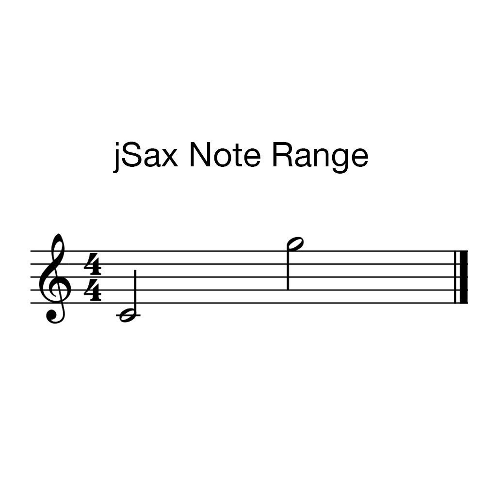 jSAX's range is G (G5) 12 degrees above center C (C4).