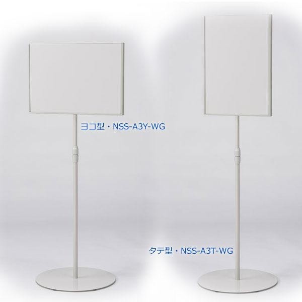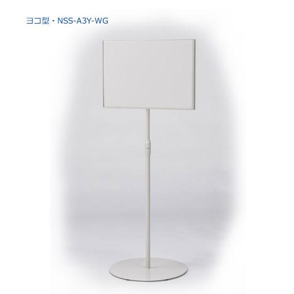 両面表示タイプのサインスタンドです。板面はA3サイズ。高さの調節可能。色は明るいホワイトグレーです。 |
