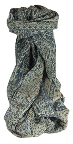 Muffler is the traditional name given in India to a particular style of long closely woven scarf, made from Kashmiri pashmina wool. Worn by both men women, mufflers were specifically designed to reduce bulk and to provide maximum warmth without restricting everyday activity. They are, therefore, extremely comfortable when worn for long periods of time with jackets or coats for work and everyday activities. Traditional Mufflers always have a fully reversible woven design in a complementary palette of colours. Each Muffler has a unique design based on the traditional heritage motifs of paisley or flowers. These same designs have been are passed down through generations of handloom weavers. Mufflers are a practical, attractive and flexible accessory. The process of hand weaving gives the fabric a soft texture that is deceptively hardwearing. Mufflers improve with age and the more they are handled and worn, the softer the fabric becomes. Our authentic Muffler is made from premium hand woven Kashmiri pashmina wool. It will not felt or sweat like heavy imitations made with fluffy, poor grade, mixed fibres or viscose. A true hand-woven Kashmiri Muffler looks immediately superior in texture and finish to imitation products that often rely on superimposed screen-printed patterns. Your scarf is supplied with FREE gift-wrap in attractive ivory tissue and presentational frosted bag along with a FREE message service. Warm to wear and easy care. Your scarf or stole should not require frequent cleaning. If you wish to freshen your item, dry clean it or gently hand wash the whole garment in cool soapy water. Never rub the fibres and always dry flat away from direct heat. When required use a cool iron. 0 |