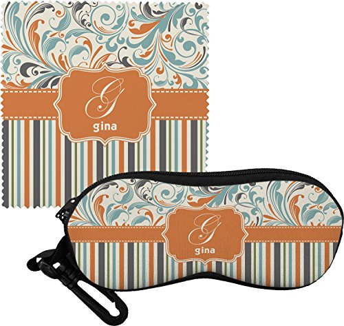 -. Title : Orange Blue Swirls & Stripes Eyeglass Case & Cloth (Personalized)