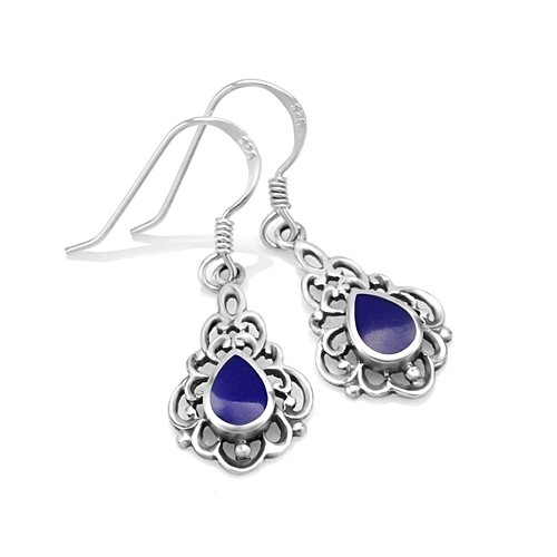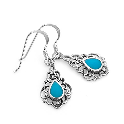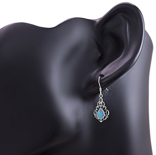 -. Title : 925 Sterling Silver Bali Inspired Gemstone Filigree Dangle Hook Earrings