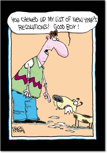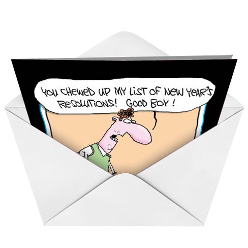 B5822 Box Set of 12 New Year Dog Funny New Year Paper Cards with Envelopes