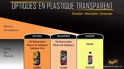 PlastX is the quick and easy way to remove clouding from headlights. Its rich gel formula quickly restores optical clarity to both rigid and flexible clear plastics. And with the cutting-edge advancements in Meguiar’s exclusive Microscopic Diminishing Abrasive Technology (MDAT); PlastX removes light oxidation, chemical degradation, surface contamination, stains and light surface scratches with ease.