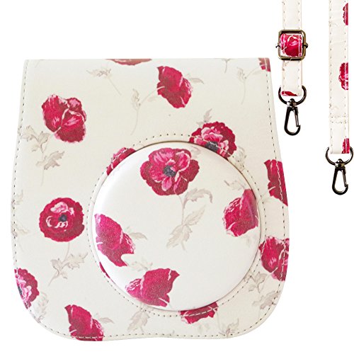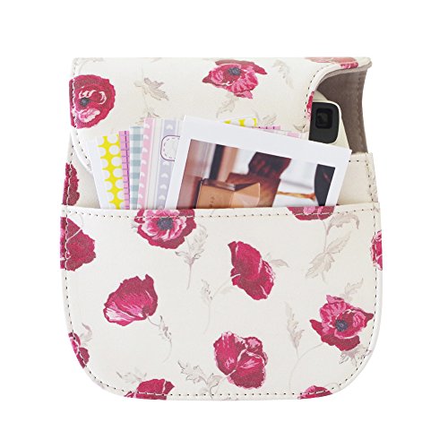 SAIKA Case Cover for Fujifilm Instax Mini 9 / 8 / 8+ Instant Film Camera, Vintage Compact Protective Bag with Shoulder Strap&Pocket, Rose