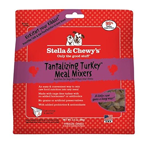 Kick start your kibble with Meal Mixers! Many dog owners have shared they like to mix their pet's dry food with other ingredients to entice picky eaters at meal time, add an extra boost of nutrition or treat their dog with tasty variety. Whatever your reason, Meal Mixers make it easier than ever to give your dog the raw meat they crave; much like they once at in the wild. All it takes is one quick scoop.Feature