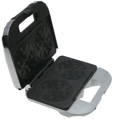 Bakes two, 5-inch-round, thin, crisp waffle cookies at once