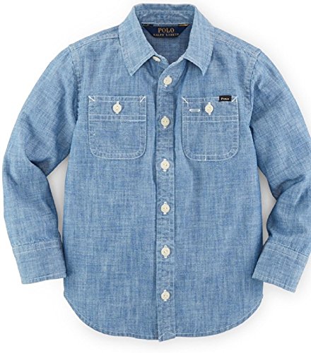 This long sleeved workshirt is a wear-everywhere style thanks to soft cotton chambray and a classic fit. team it with corduroys or a skinny jean for a tomboyish look. Buttoned placket Long sleeves with buttoned barrel cuffs Two patch pockets at the chest "Polo" label at the left pocket