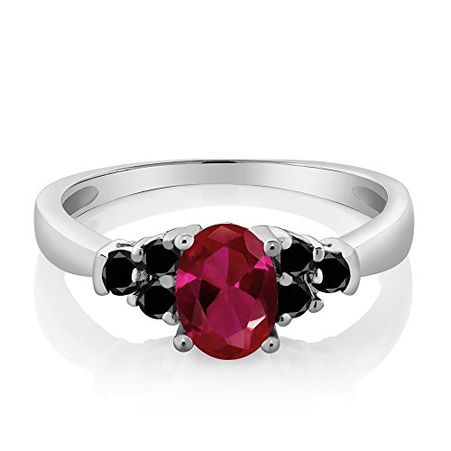 -. Title : 0.88 Ct Oval Red Created Ruby Black Diamond 925 Sterling Silver Ring (Available in size 5, 6, 7, 8, 9)