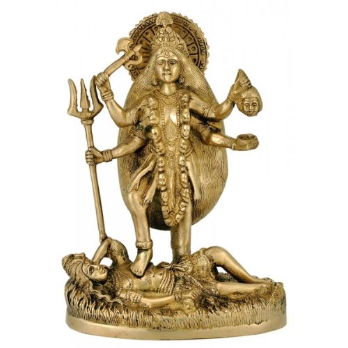 Gangesindia Powerful Spiritual Goddess Maha Kali On Shiva Brass Statue (9.50"H x 7"W x 3.75"D)