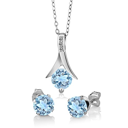 -. Title : 2.75 Ct Sky Blue Topaz White Diamond 925 Sterling Silver Pendant Earrings Set