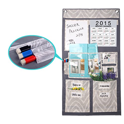 - Structure:3 layers with 5 vinyl pockets & 4 fabric pouches,Top with hook you can hang it over door,wall,wardrobe,closet in living room, bedroom, dinning room, kitchen, office, dormitory,etc