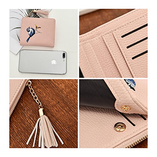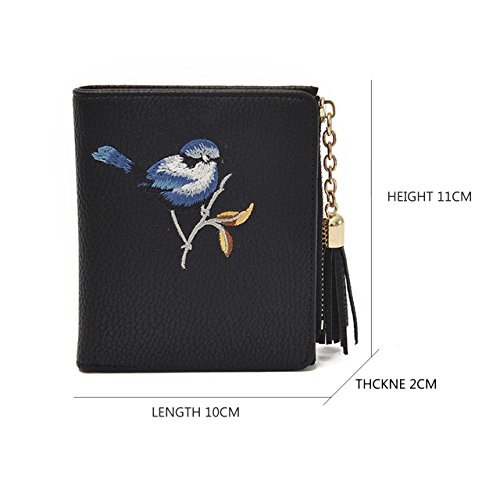 *Made of High Quality Premium PU Leather, Wear-resisting, Durable to Use *1 x Cash Compartment, 1 x Zipper Pocket, 7 x Card Slots (Including 1 x ID Display Window) *Large-capacity package can be used as clutch bag/purse wallet. *Excellent Craftsmanship, Practical and Fashionable *Innovative Cute Bird Embroidery Pattern, Making you Outstanding and Unique from Others *Great Gift for Yourself, Your Family and Your Friends Specifications: