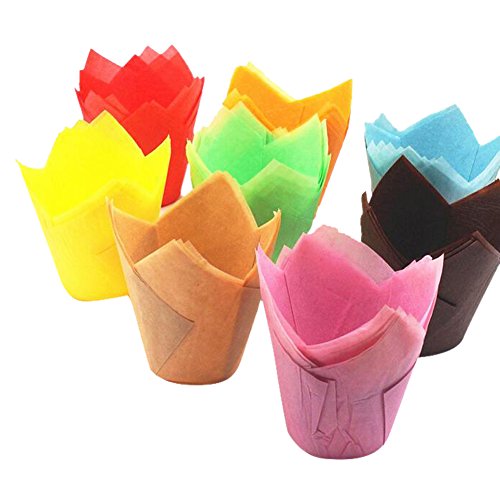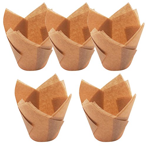 Lesirit Standard Sized Colorful Tulip Shaped Cupcake and Muffin Paper Baking Cups (100, Gold)