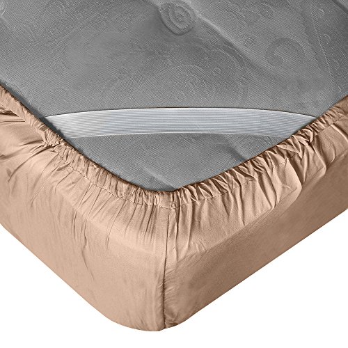 Premium 21" Inch Extra Deep Pocket Fitted Sheet - Luxurious & Soft Queen Size Linen Fitted Taupe Sand Sheets, Bedroom Essentials - The Only Super Tight Fit Fitted Sheet with Smart Corner Straps