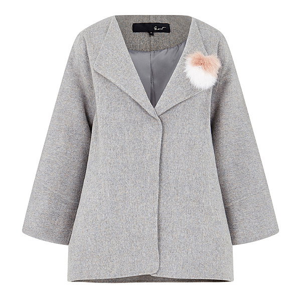 - 탈부착 가능한 퍼 부토니에 장식이 돋보이는 트렌디한 무드의 자켓