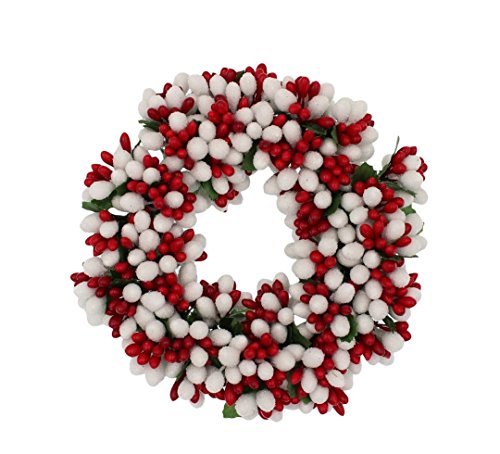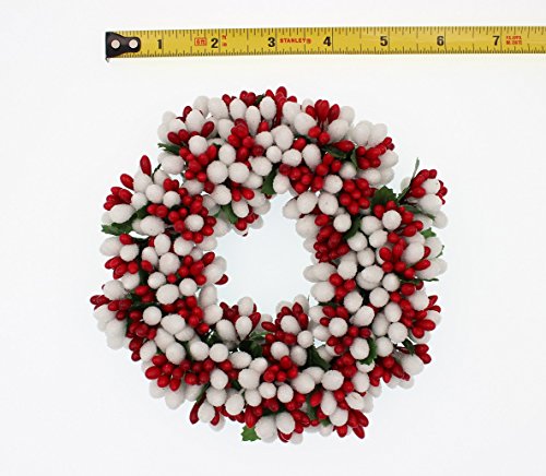 6.5-inch Beaded Berry Wreath Candlering Candle Ring Christmas Red White