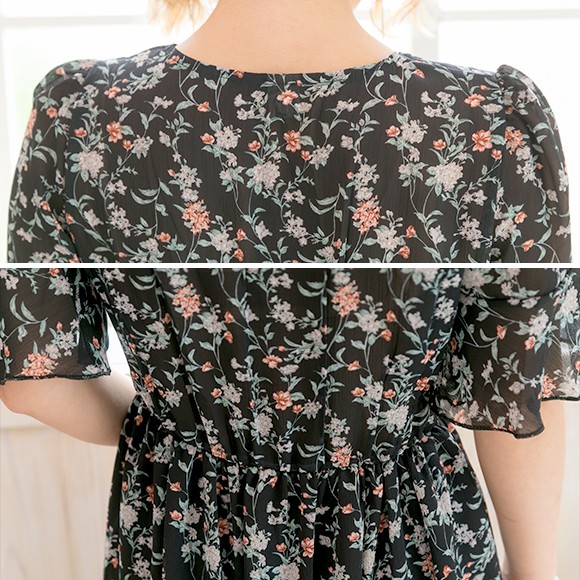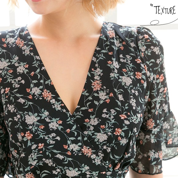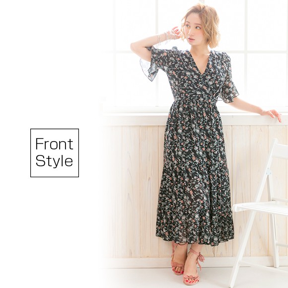 襟元のカシュクールデザインが首元・デコルテを綺麗に魅せてくれ、大人可愛く着て頂けます♪
