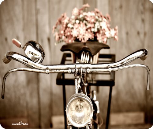 Vintage Bicycle and Flowers Thick Mouse Pad