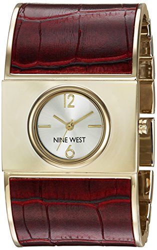 -. Title : Nine West Women's NW/1926SVBY Gold-Tone and Burgundy Croco-Grain Bangle Watch