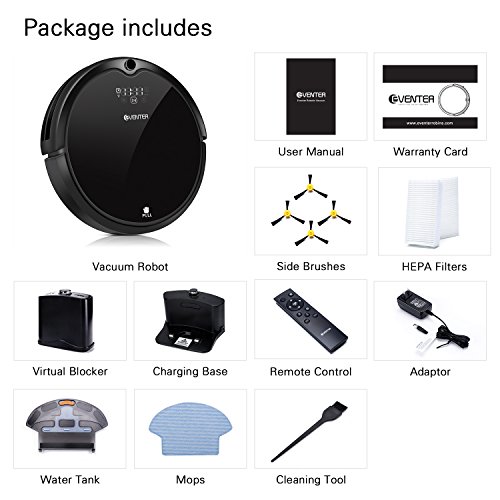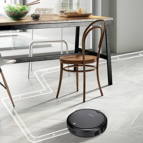 -. Feature : 2D Navigation- 2D gyroscope navigation with visual localization can plan route intelligently. Clean around clutter and avoiding barrier. The cleaning effect is better than 98%, also the cleaning path is not repeated. Escape from small space intelligently. / MULTIFUNCTION- This robot is widely used in homes, hotel rooms and offices. It works on short-pile carpet, wood and tile, and adjusts automatically to different floor types. It is not suitable for carpet if with wet mop. The four cleaning modes (automatic cleaning, spot cleaning, border cleaning and scheduling cleaning) meet your different demand. / POWERFUL SUCTION- Suction power of your robot reaches 1000pa, ensuring that even tiny dirt on the floor will be cleaned thoroughly. Its clearing efficiency is up to 95%. It will automatically adjust the suction power according to different floor types. It highly improves cleaning efficiency and saves up to 30% of electricity. / UV LIGHT- With UV disinfection, your robot help remove most organisms present on surface that can cause infection or disease, such as the bacterium, germ or dirt from the pets. The robot will protect you far from them with UV light. It is much safer used in a family. / AUTO CHARGING- To turn your robot on, when your robot starts cleaning cycle until low battery. As it cleans, your robot calculates the optimal cleaning path and determines when to use is various cleaning behaviors. It will automatically return to the charging base to recharge.