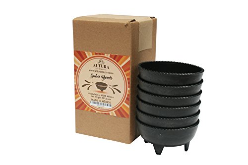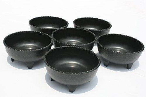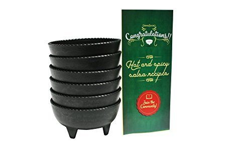 Salsa Bowl Set Of 6 | Mexican Mini Molcajete Salsa Serving Bowls - Colored Black | Ideal For Fiesta Party | Made in Mexico & Imported | Bonus Booklet Of Hot & Spicy Red Green Salsa Chili Recipes