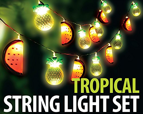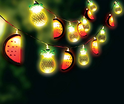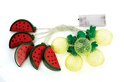 KOVOT Tropical String Lights Set - Includes (2) 10-Light Strings Of Alternating Pineapples & Watermelons - Each 5' Feet Long