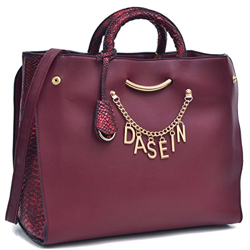 -. Brand : Dasein -. Color : Multicoloured -. Department : womens -. Feature : GIFT - Enjoy the benefits of free Dasein vegan fabric shopping bag / LARGE CAPACITY - Approx. 16.5"W x 13"H x 7"D - Fit 15" Laptop, Tablet, Document, Book. Ideal for work and school - Ring Handle Drop: 2.75" - Removable adjustable long shoulder strap for hand free ease / UNIQUE DESIGN - Expandable sides with snap buttons in beautiful snake-skin embossing detail - Golden Dasein charm hanging on front - Protective feet at bottom - Key fob / COMPARTMENT - Top zipper opens to one compartment with zipper wall pocket & multipurpose slide pockets for better organization - Lined in soft beige fabric which makes it easy to find your stuff / MATERIAL - Gorgeous faux textured leather with gold-tone hardware -. Model : XL-02-6592 -. ProductGroup : Shoes -. ProductTypeName : HANDBAG -. Title : Dasein Designer Women's Signature Top Zip Ring Tote Shoulder Bag Satchel Purse w/ Snake Embossed Trim Fit 15"Laptop