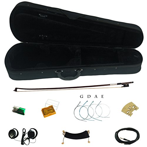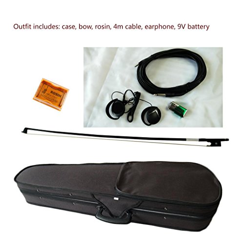 Accessories: 1 x case (traditional triangle case, light and convenient with the materials of oxford, foam and velvet) 1 x bow (high quality horsetail, brazilwood stick, ebony frog, suede pad, cupronickel winding) 1 x rosin (natural intermediate) 1 x 4m cable, 1 x earphone, 1 x 9V battery
