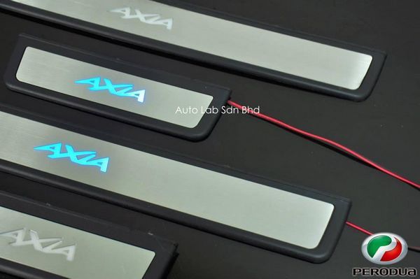 PERODUA AXIA 2014 - 2015 OEM Stainless Steel PVC Blue LED Door Side Sill Step Plate Made In Taiwan (KS1)