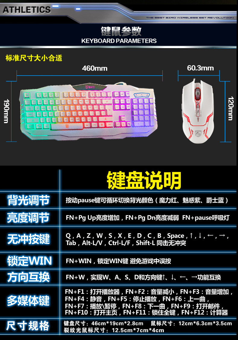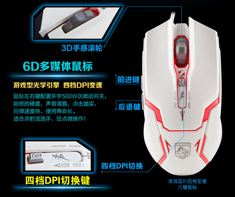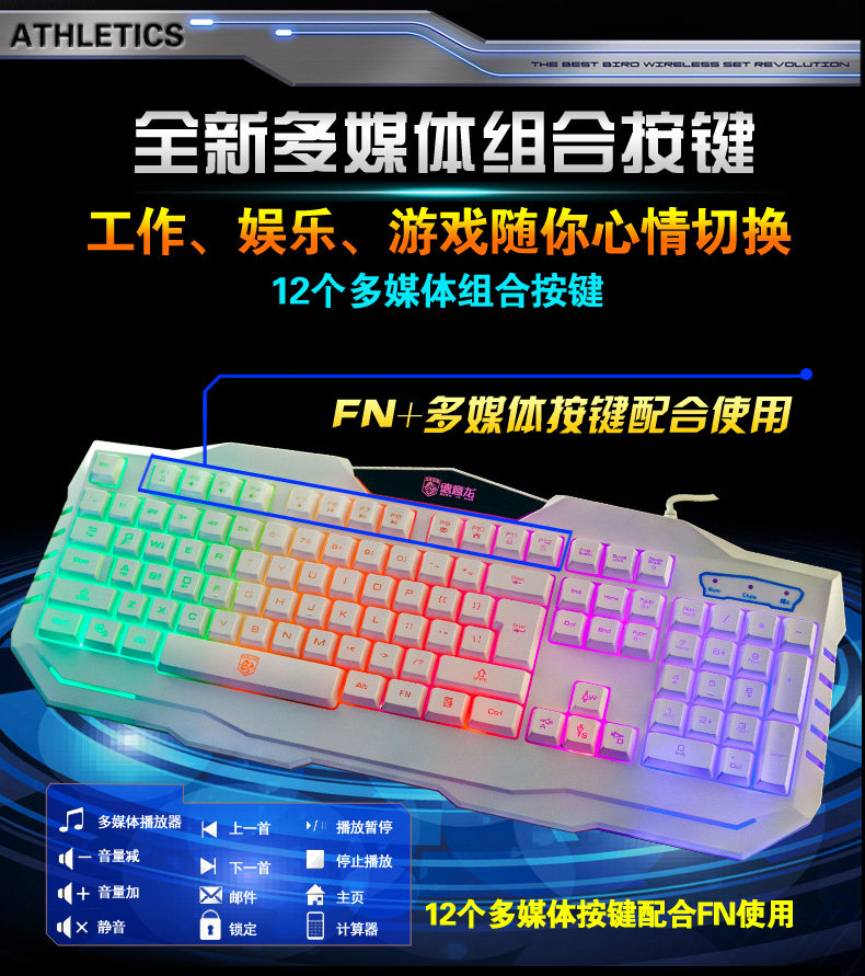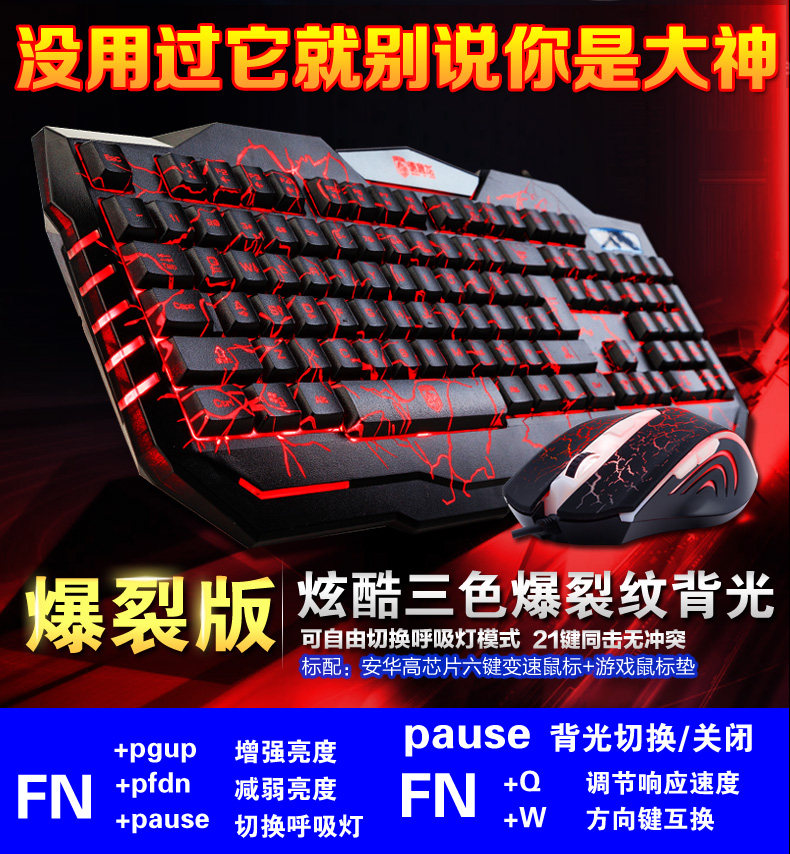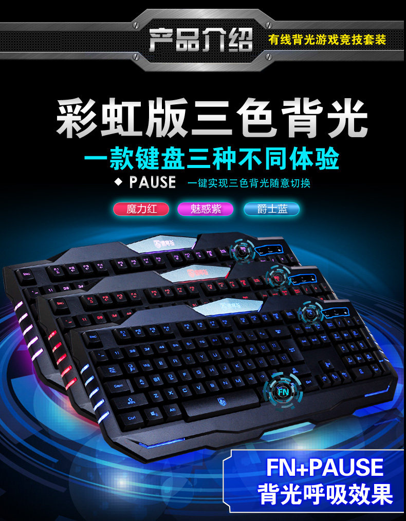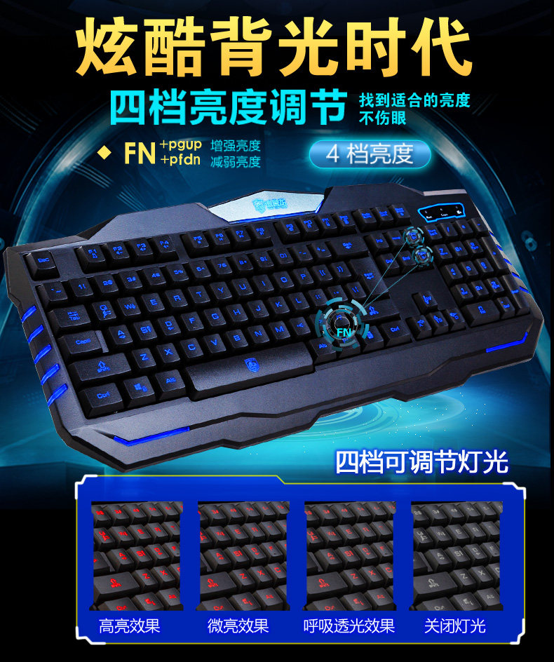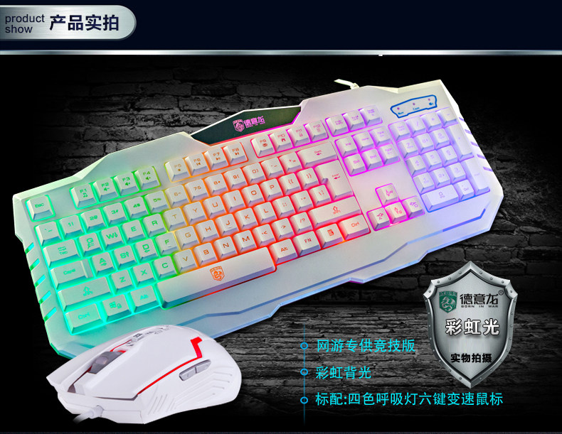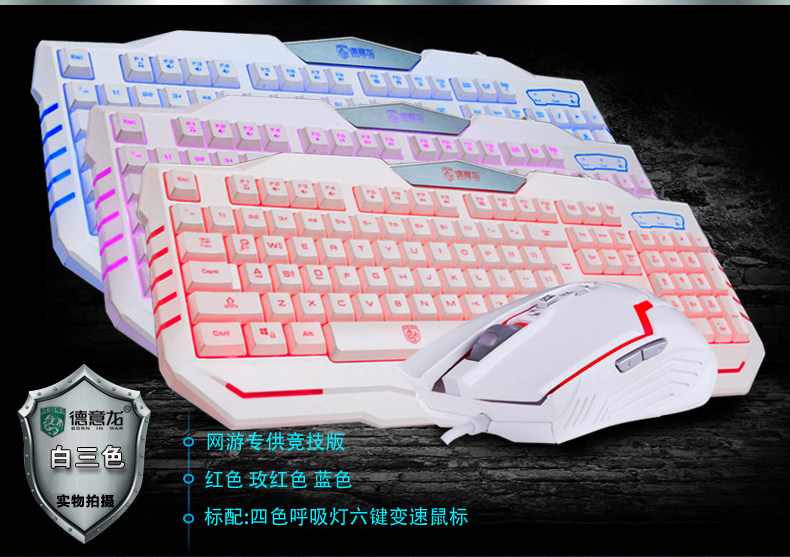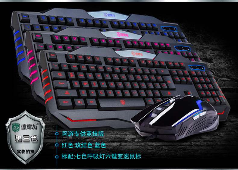 德意龙机械手感有线键盘鼠标套装 游戏背光键鼠电脑台式笔记本USB