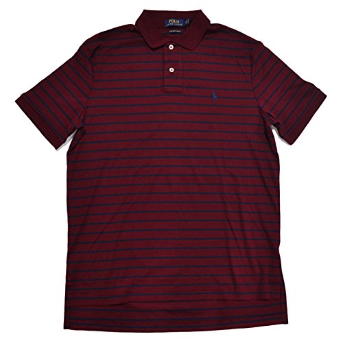 Polo Ralph Lauren Mens Pima Soft Touch Interlock Polo Shirt (Large, Wine/Navy)