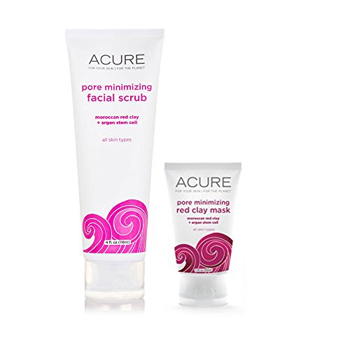 -. Feature : This bundle includes one 4 oz. bottle of Acure Pore Minimizing Facial Scrub Exfoliator with Moroccan Red Clay and Argan Stem Cells and one 1.75 oz. bottle of Acure Organics Pore Minimizing Red Clay Facial Mask / Facial scrub with Moroccan red clay helps draw impurities as black jojoba beads delicately exfoliate / Facial mask with Chlorella Growth Factor revs up cellular renewal and collagen production; perfect mask to minimize pores and calm the skin for a brighter, smoother you / Organic, all natural formula includes argan oil stem cells, black jojoba beads, aloe vera, rosehip oil, acai, chlorella growth factor, calendula and chamomile / This product is vegan, sulfate free, cruelty free, paraben free, PEG free, petroleum free, phthalate free, silicone free, gluten free, synthetic fragrance free, won't clog pores, and is 100% biodegradable
