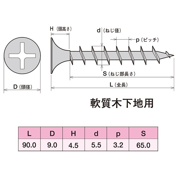 ●合板+木 石膏ボード+木  軟質木下地用ビス