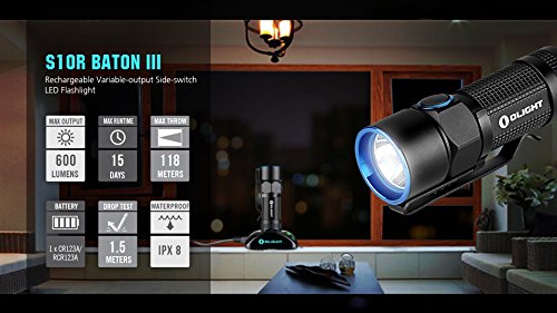 Olight S10R Baton III, Generation 3, SST-40 LED 600 Lumens Rechargeable EDC Flashlight with Customized 650mAh RCR123A Battery, Charging Dock, USB cable and LegionArms battery case