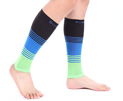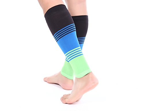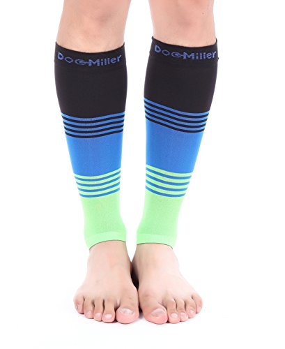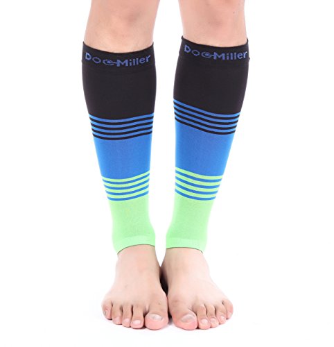 Doc Miller Calf Compression Sleeves are made of Durable, Breathable, Comfortable, Premium fabric made of high-grade Nylon (77%) and Spandex (23%) for a snug, comfortable, compressive fit. The sleeves aid in faster recovery for improved performance and support. By boosting blood circulation in your legs and preventing injuries, the sleeves allows you to feel fresher for more activity. The perfect graduated support ranging from 20-30 mmHg allows for more blood flow where needed. Perfect opaqueness provides a professional look and feel and the compression lasts a long time. The open toe version can be used as pregnancy maternity stockings. What Size Should You Get? The sizing chart displays product sizes for a range of calf sizes including plus sizes. Who Should Use It Effective for both men, women and teens, use them for a wide range of activities - from warming up to sessions of Tennis, Basketball, Racquetball, Football, Soccer, Hiking, Cross Fit, and other athletic activity. Fabric characteristics keep it comfortable regardless of season. If you are pregnant, in nursing as a nurse, in retail or construction this product will prevent soreness and aching feet. If you travel by air, this product may help reduce fatigue and Deep Vein Thrombosis (DVT). This product may help those suffering from lymphedema, neuropathy, sciatica, calf cramps, spider or varicose veins, venous insufficiency, shin splints, calf pain, swelling in the feet, inflammation, pain in leg, soreness and aids in faster recovery from sports activities and running. Studies show compression accelerates recovery after workout by increased blood circulation. This product may also help you with Restless Legs Syndrome (RLS). Don't wait anymore! Experience the benefits yourself. Different sizes sell out - if you see your favorite color/size click Add to Cart. Your calves and legs will thank you! 0 |