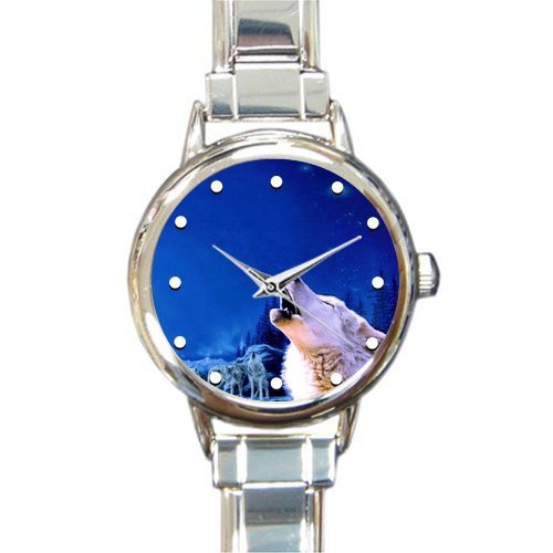-. Title : Personalized Watch Howling Wolf At full Moon Round Italian Charm stainless steel Watch