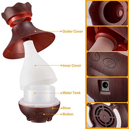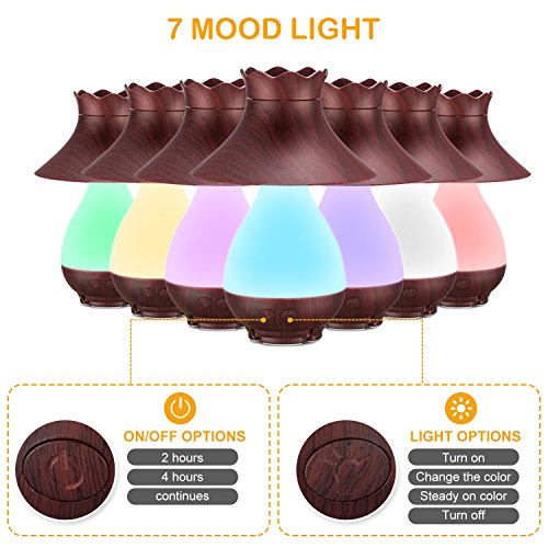 Aroma Diffuser Essential Oil Diffuser for home Ultrasonic Aroma Cool with smart Mist Mode 7-Color LED 7 colorful changing lights, Whisper Mute Auto-Shut off Wood grain oil diffuser for Home Office